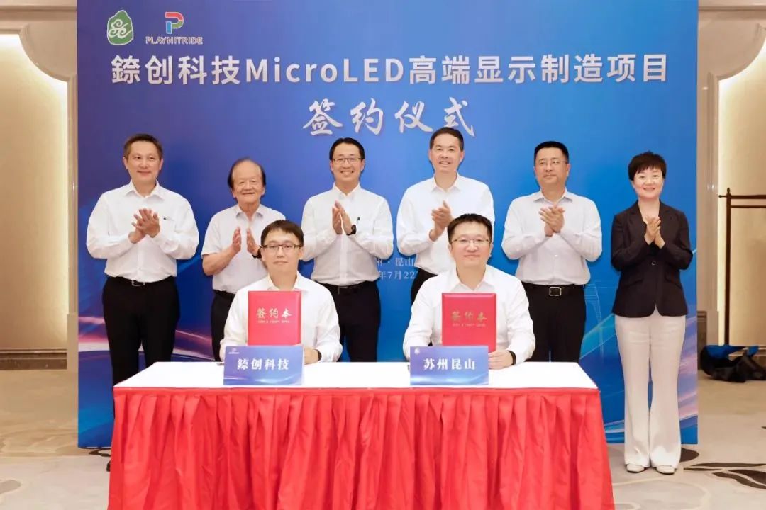 7月22日,錼創科技Micro LED高端顯示制造項目簽約儀式在蘇州舉行。蘇州市委書記劉小濤會見了錼創科技股份有限公司董事長李允立,并共同見證項目簽約。江蘇省光電顯示產業聯盟執行理事長薛文進;蘇州市領導毛偉,昆山市委書記陳麗艷參加活動。