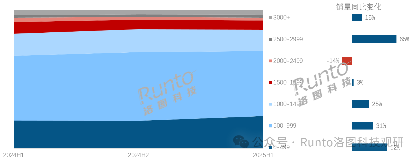 2025H1 中國顯示器線上市場(chǎng)按銷量價(jià)格段結(jié)構(gòu)