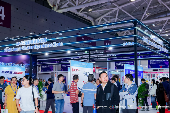 AI+AR智能眼鏡體驗區,聚焦下一代人機交互,融合了AI與微顯示技術,李未可、谷東智能、維深信息、大朋VR、易天科技、形意智能等展示輕量化全彩光波導、Micro OLED微顯示、雙目SLAM與手/眼追蹤、多模態語音-視覺交互、AI字幕與同傳等技術產品,加速AI+AR眼鏡從研發走向規模化應用。