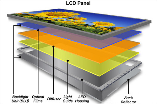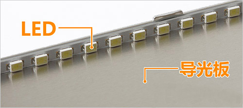 邊緣發(fā)光型LED背光在結構上相對此前CCFL背光在結構上沒有太大的改變,作為主動光源均放置在面板的邊緣。通過導光板將光源輸出的光線均勻地遍布整個畫面。也因為LED的小型化,可以使整塊面板更薄。