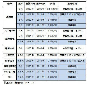 即將過去的2009年可以說是中國LCD面板產(chǎn)業(yè)投資的高峰年,據(jù)賽迪顧問統(tǒng)計,僅2009年投資(或擬投資)的LCD面板生產(chǎn)線就多達6條,面板生產(chǎn)線的世代覆蓋了6至8.5代,參與投資的企業(yè)除了傳統(tǒng)的面板生產(chǎn)廠商如京東方、龍騰光電等,還涉及到一些新進入的企業(yè),如中電熊貓、TCL等,其中也不乏一些外資企業(yè)的身影,如LGD在廣州投資的8.5代線。