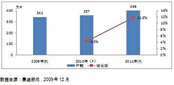 圖1 2009-2011年中國LCD面板產(chǎn)能規(guī)模及增長率(以玻璃基板為單位計算)