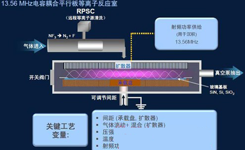 應用材料AKT的CVD產品營銷執行總監肖勁松表示,PXPECVD系統包含3個平臺:針對5代基板的15KPXPECVD,基板尺寸為1200x1300mm;6代基板的25KPXPECVD,基板尺寸為1500x1800mm;8.5代基板的55KPXPECVD,基板尺寸為2200x2500mm。上述三類基板厚度均為0.5~0.7mm。